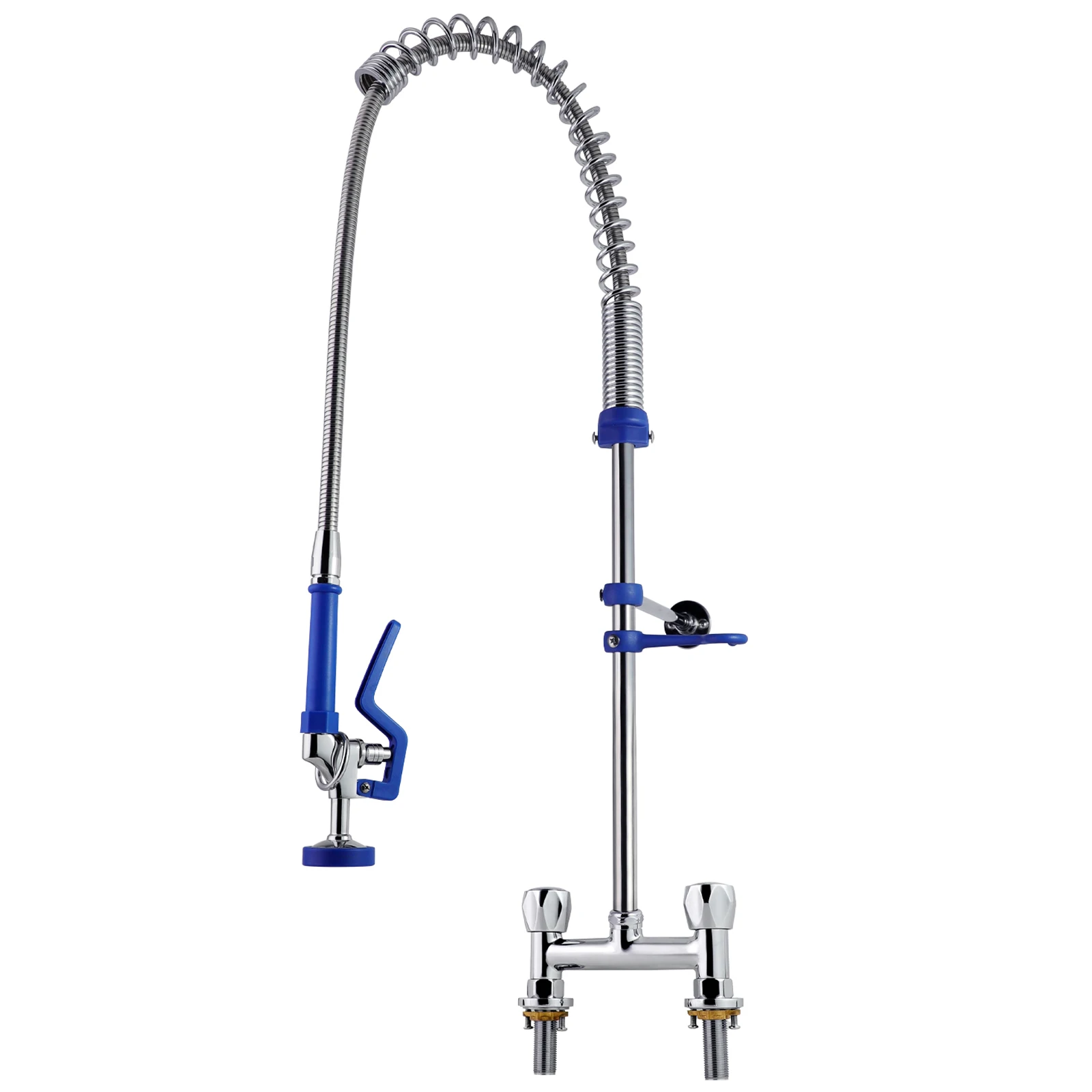 Commercial Kitchen Faucet with Classic Style Dual Hole Brass and SUS304 Pull Sprayer and Spring Mixer 2 Function Sink Faucet