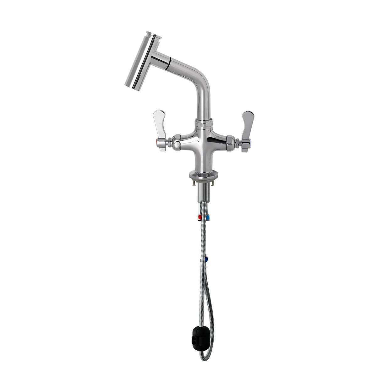 High Quality Dual Handle Deck Mounted Commercial Kitchen Sink Tap Mixer Faucet 360-Degree Rotating Pull Out Down for Home/Dining
