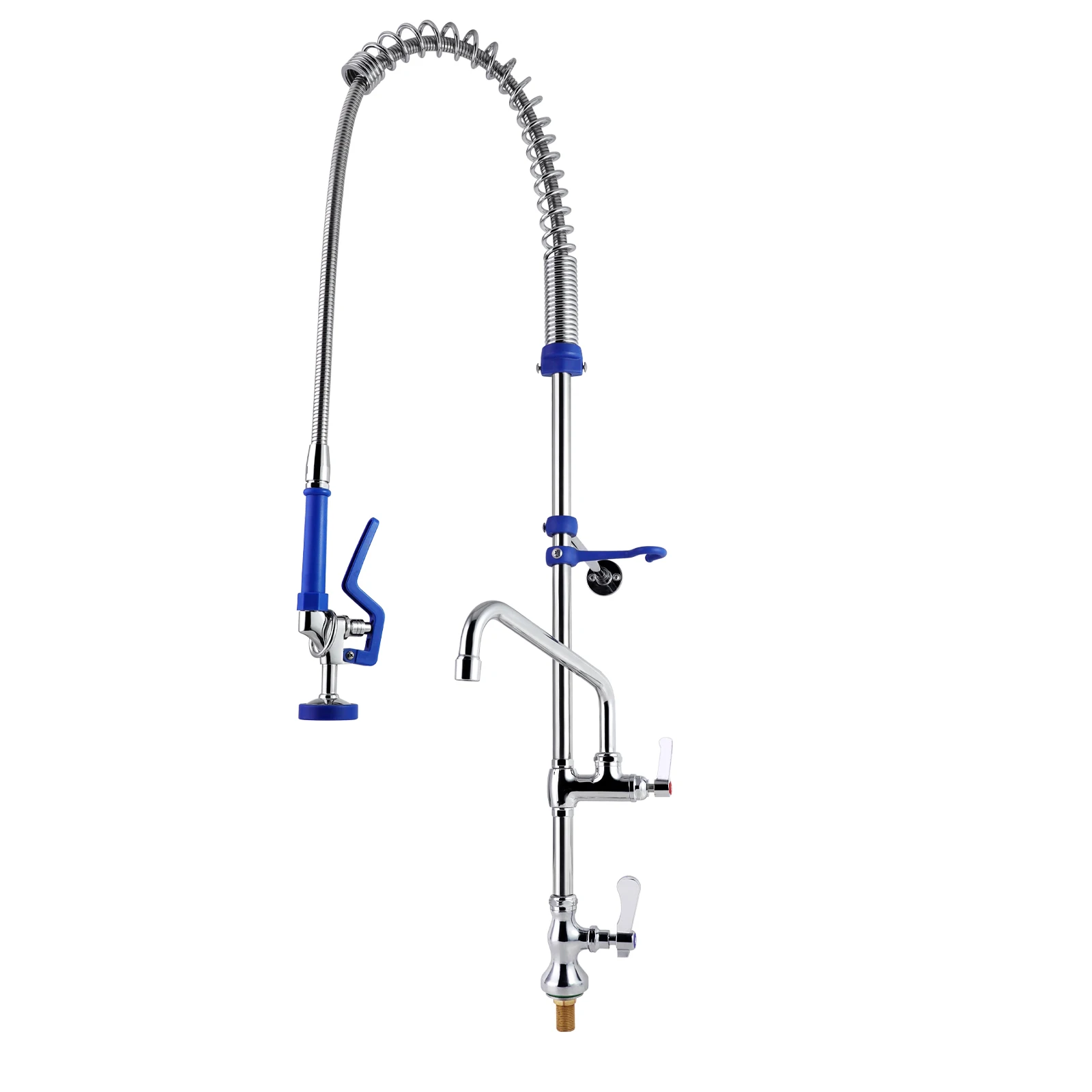 Сучасний торговий настільний кухонний кран з одним отвором, витягуваний з латуні, з попереднім ополіскувачем та двома ручками, керамічний клапан