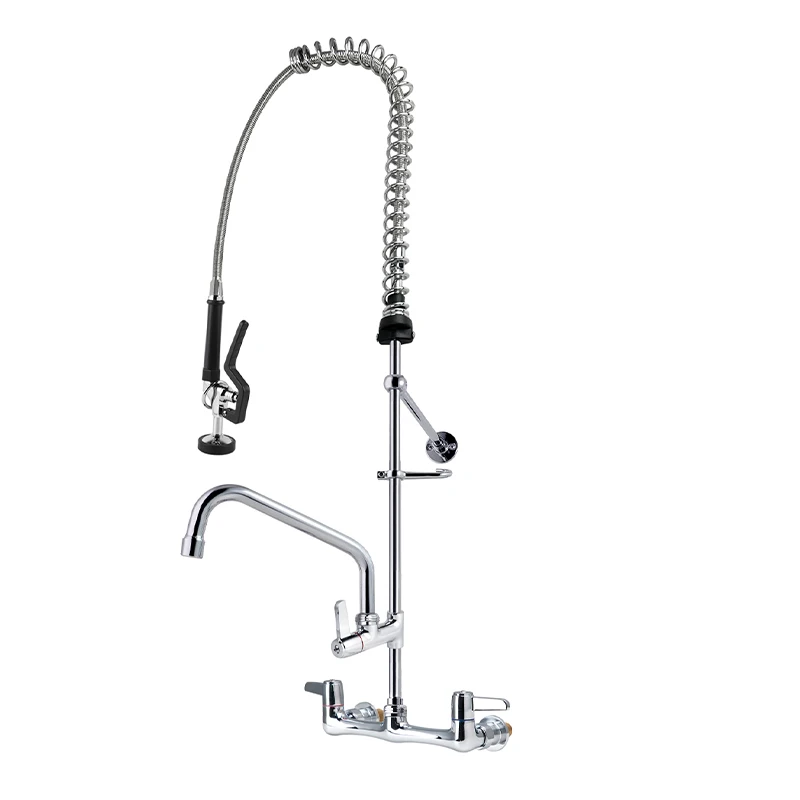 Керування з подвійною ручкою та гнучка функція попереднього ополіскування забезпечують неперевершену експлуатаційну ефективність і універсальність. Подвійні ручки дозволяють точно регулювати температуру та напір води, усуваючи необхідність проб і помилок, притаманних конструкціям з однією ручкою, і скорочуючи витрати води. Персонал може швидко перемикатися між гарячою та холодною водою для виконання різних завдань — що є критично важливим під час годин пікового навантаження, коли швидкість безпосередньо впливає на продуктивність. Гнучкий ополіскувач з подовженим шлангом та двома режимами подачі води забезпечує повне охоплення великих комерційних раковин, дозволяючи персоналу очищати важкодоступні місця та великогабаритні предмети, не переміщаючи їх. Ця універсальність дозволяє крану виконувати різноманітні завдання — від обережного промивання продуктів до інтенсивного видалення жиру, роблячи його надійним універсальним інструментом у завантажених комерційних кухнях. Одночасна робота ополіскувача ще більше підвищує ефективність, дозволяючи персоналу виконувати кілька завдань одночасно або міцно тримати посуд під час очищення.